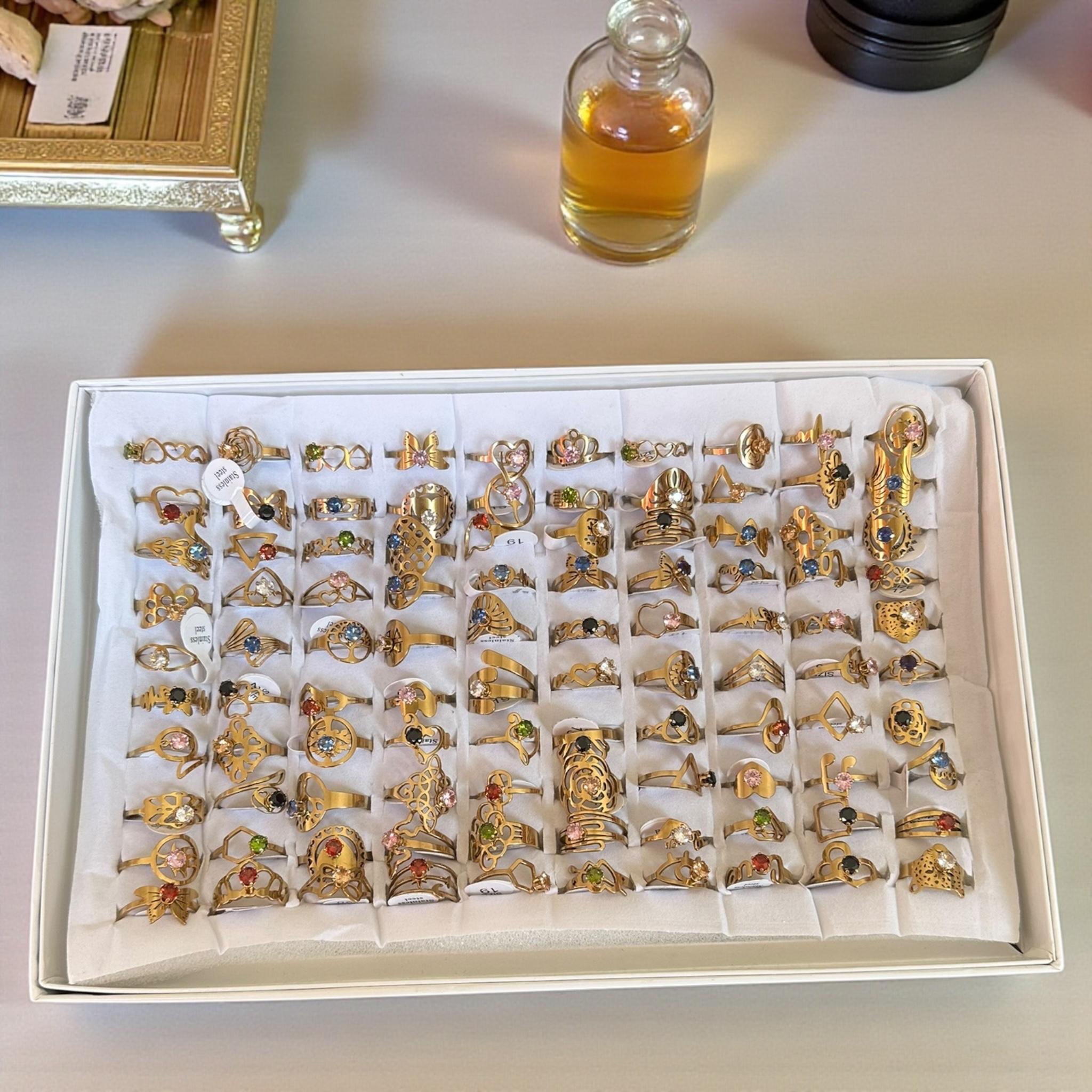 100 Anillos Acero Inoxidable con Pedreria $6.9 c/u