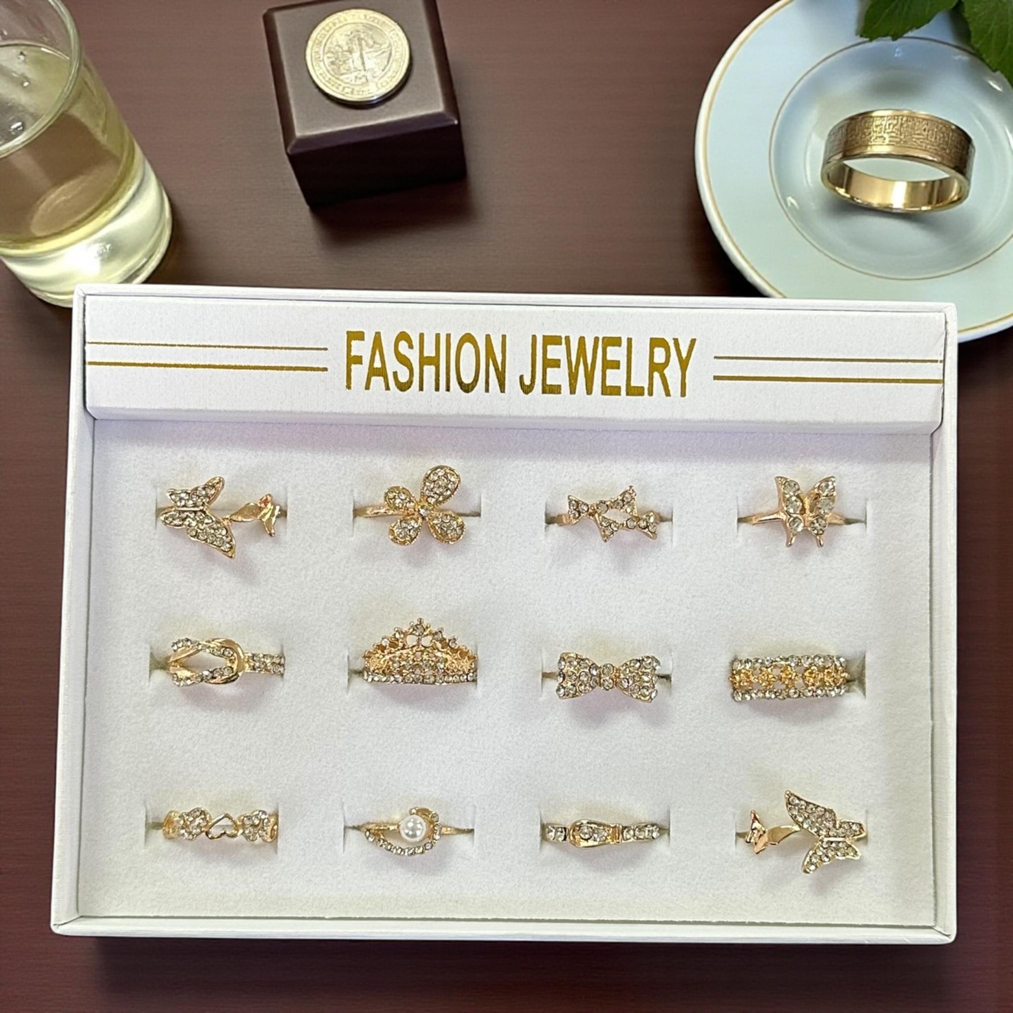 12 Anillos Dorados Figuras con Pedreria $5.7 c/u