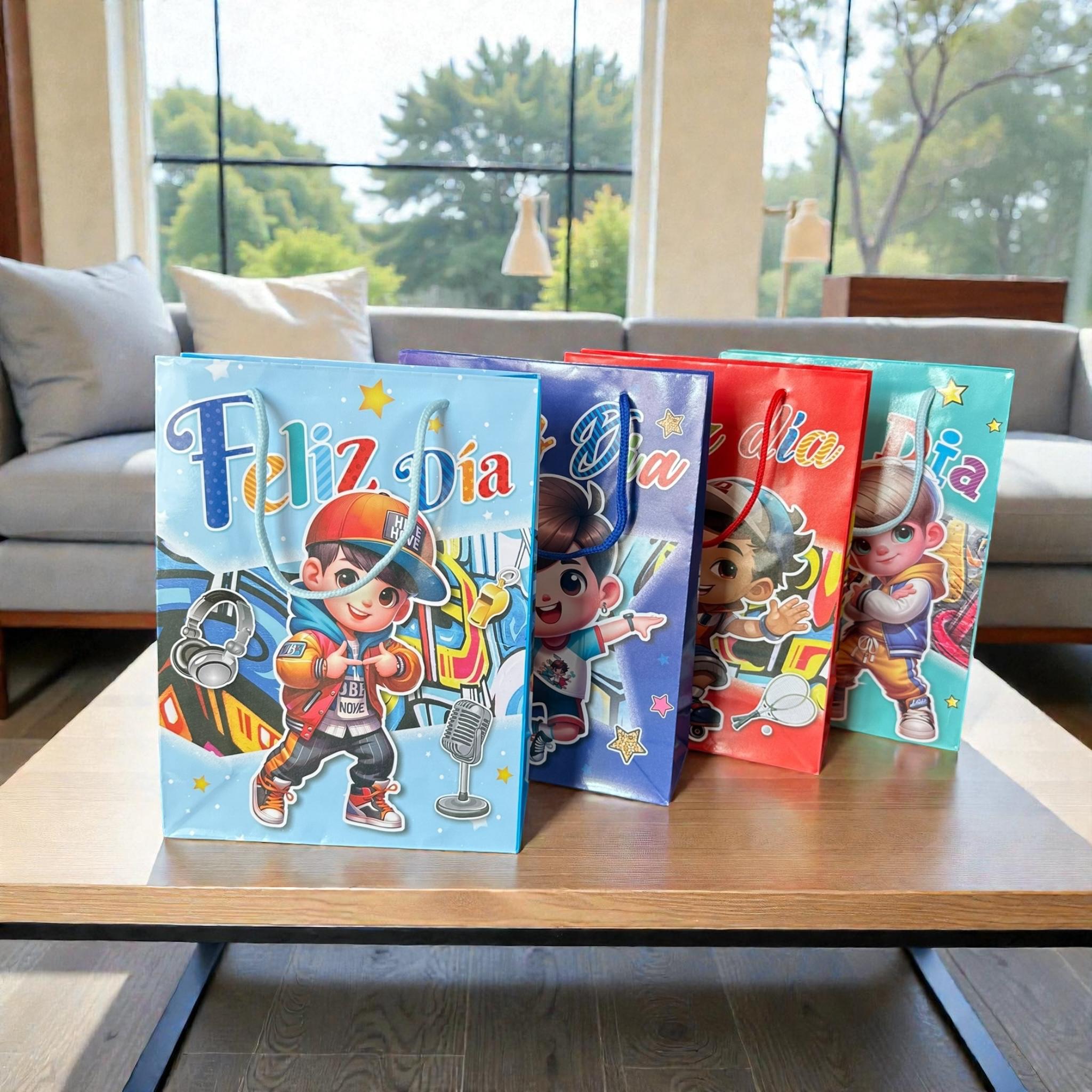12 Bolsas para Regalo "Feliz Dia" $5.9 c/u