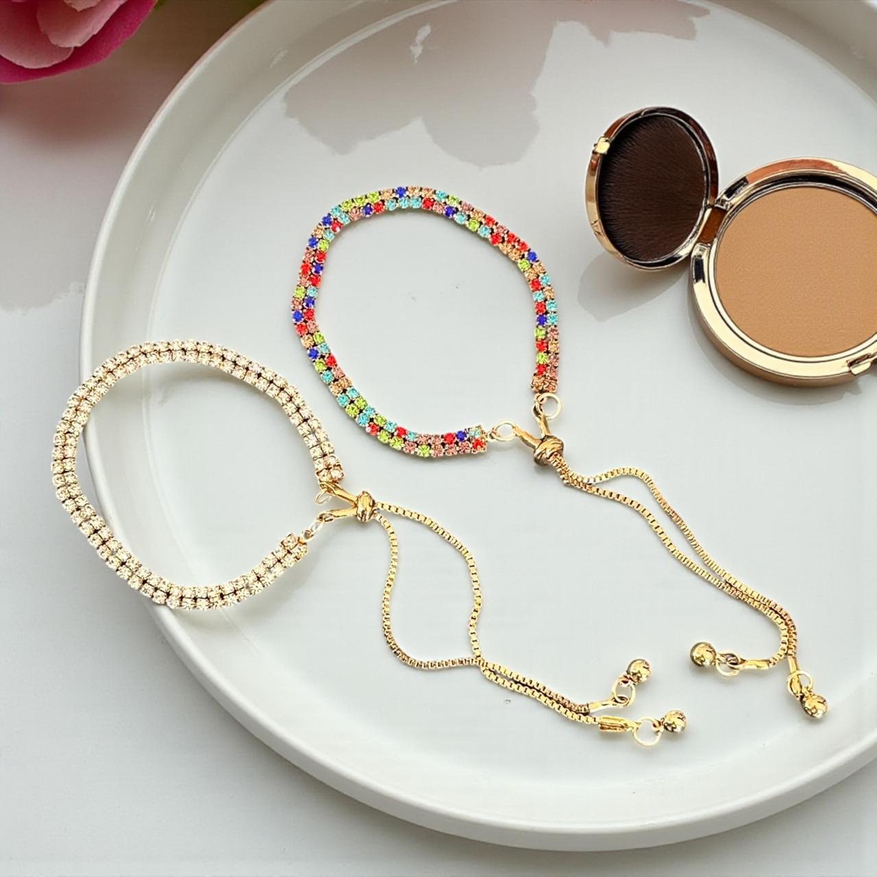 12 Pulseras Doradas Pedreria Ajustable $11.9 c/u