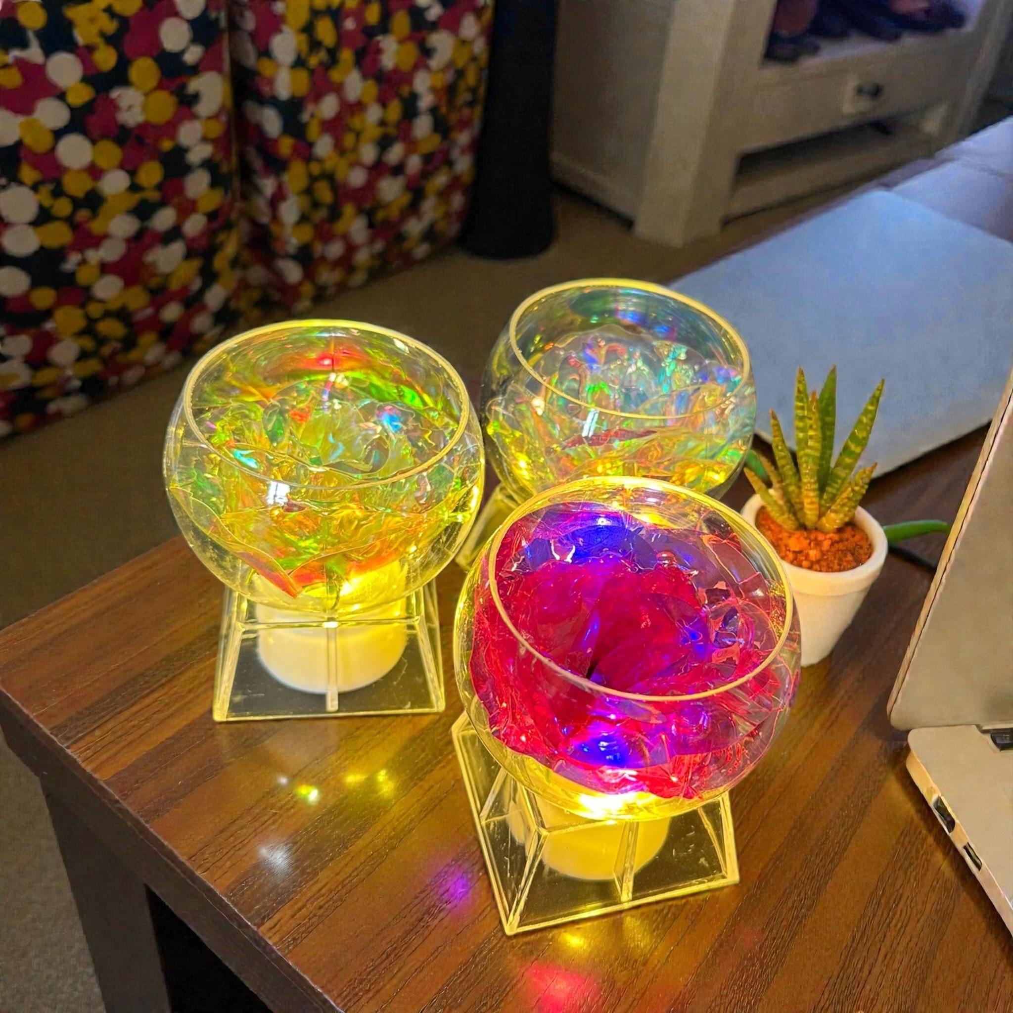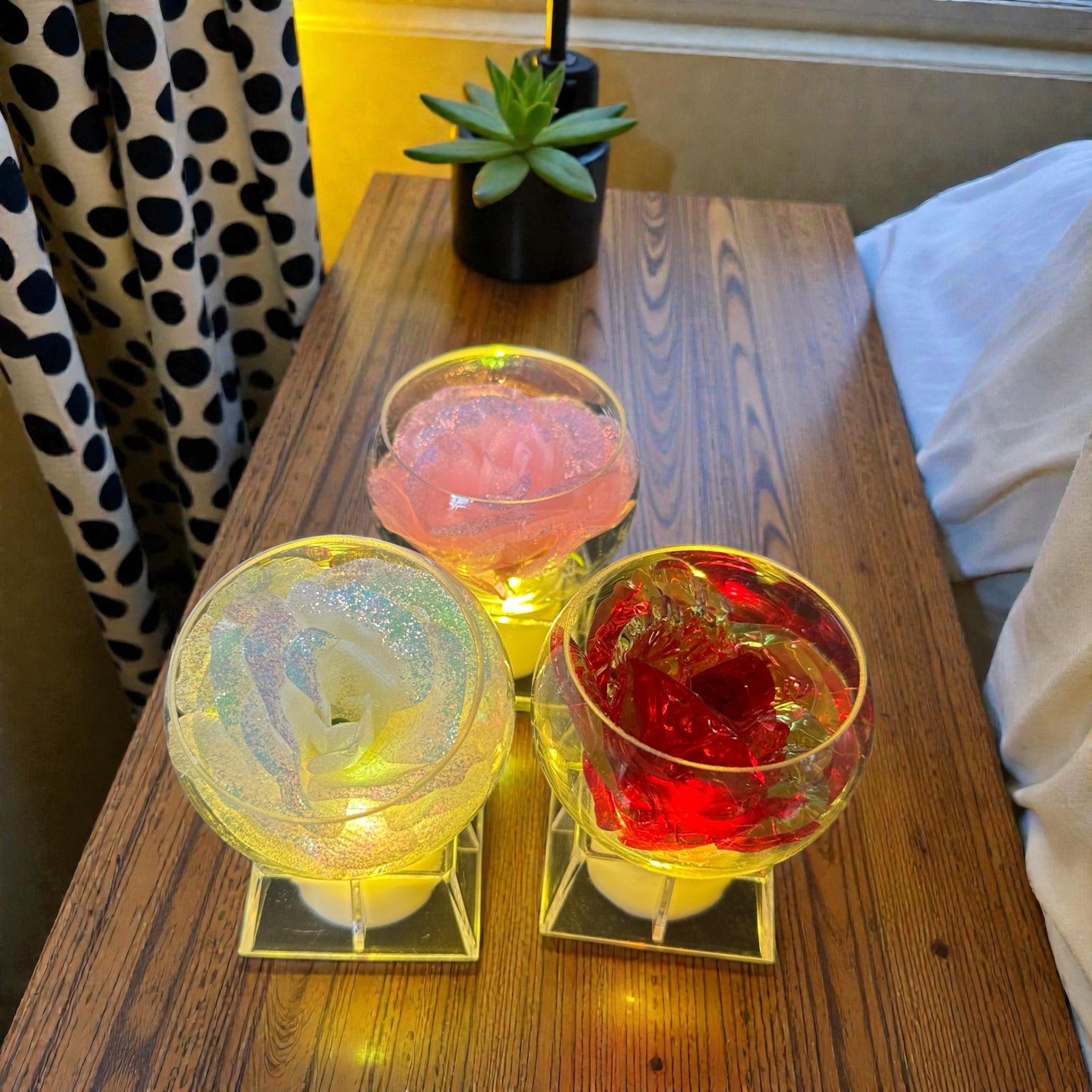 12 Rosa Eterna con Base y Luz Chica $27 c/u Leer más...
